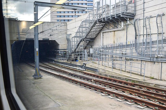 Just about to enter the Canal Tunnels. Note the crossover. Both tunnels are bidirectional.