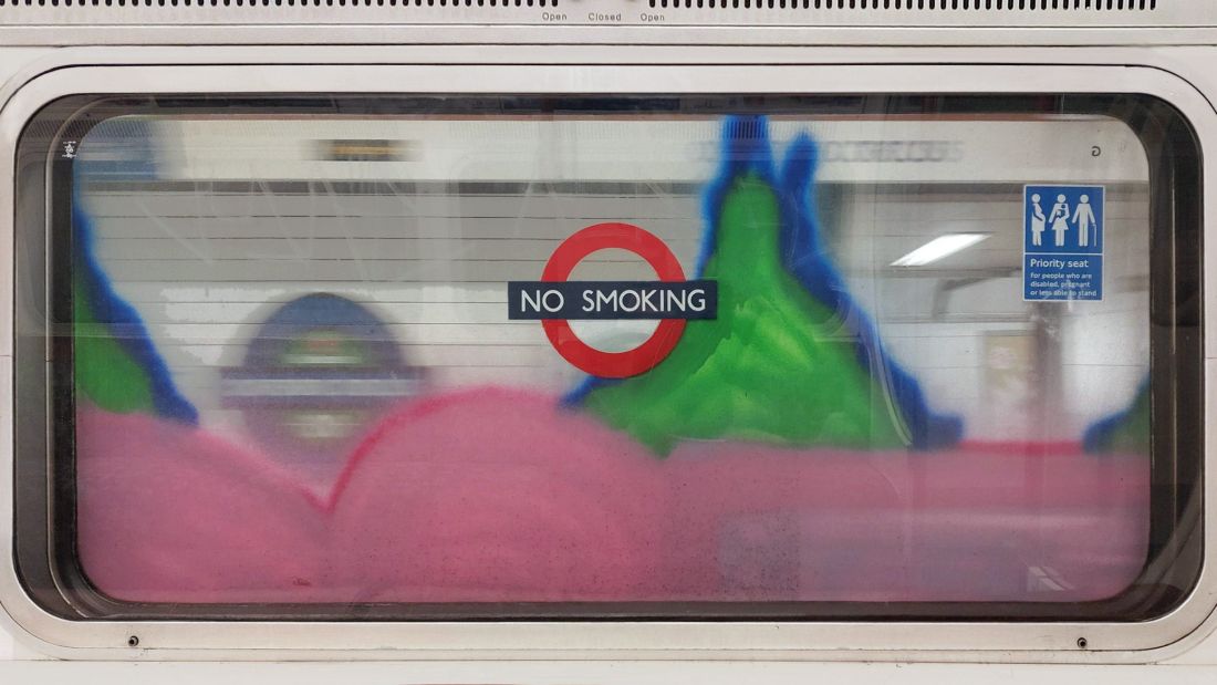 The above formed the original feature image and was taken from inside one of the graffiti hit trains as it left Oxf0.0rd Circus – the pic caught the Heineken roundel as the train passed it at speed. Interestingly some of the colours (blue, green and red) on the window matched those used by Heineken! No doubt the 1972 stock’s now classic ‘no smoking’ roundel also added additional interest to the scene!