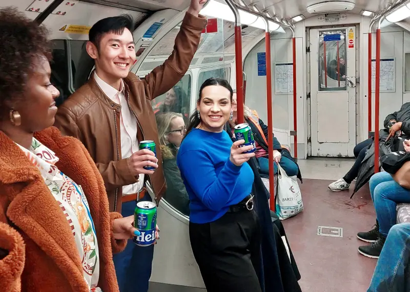 As mentioned earlier Heineken personnel had been seen advertising the lager. A picture was published in the London Evening Standard today (9th January 2026) with Heineken saying they could get around the tube booze ban! The above is my own picture which was taken just after the train had left Waterloo station.