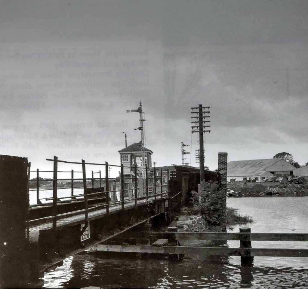 View of the swing bridge at Pottington and the signal box that controlled it. View looks west towards Wrafton. Source: Facebook