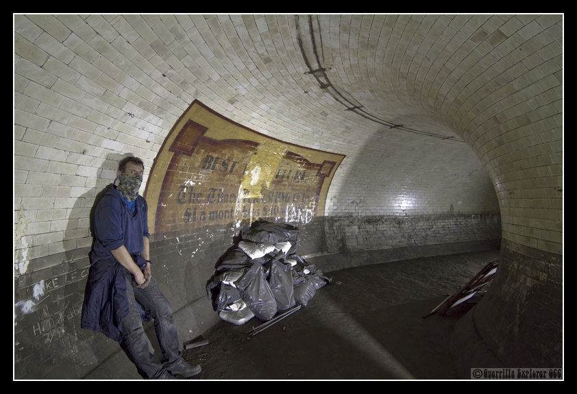 As for the source of light, where was it coming from? Well I think I have the answer to that! If the lifts were still working perhaps a large light source was brought down these, and then positioned just outside the lift entrance, from where it was plugged in and shone towards the advertisement.
