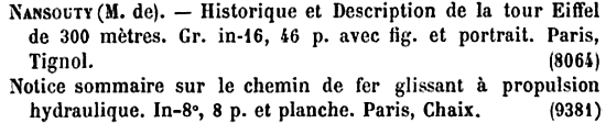 The Barre/Girard train listed with the Eiffel Tower – Annales Des Mines Mémoires (1889).