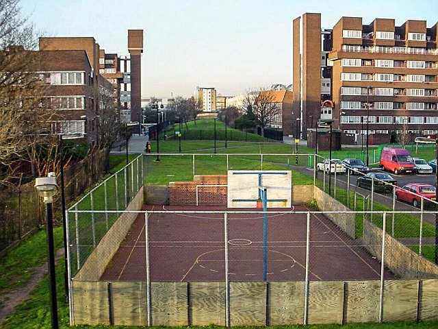Plough Way in 2002 – still extant and complete with street lights. Eddystone Tower in distance.