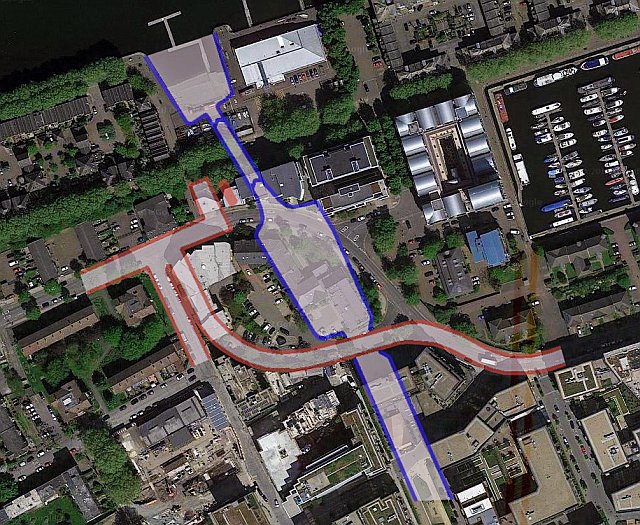 I have drawn this map specially to show where the old Plough Way went and how it related to the canal itself. Plough Way is in red and the canal in blue. The red rectangle is the site of the old Canal office, which very disappointingly was demolished despite being seen as a building of historical interest. As evidenced by the map, the old stump belonging to Plough Way was realigned to face the west side of the canal office.