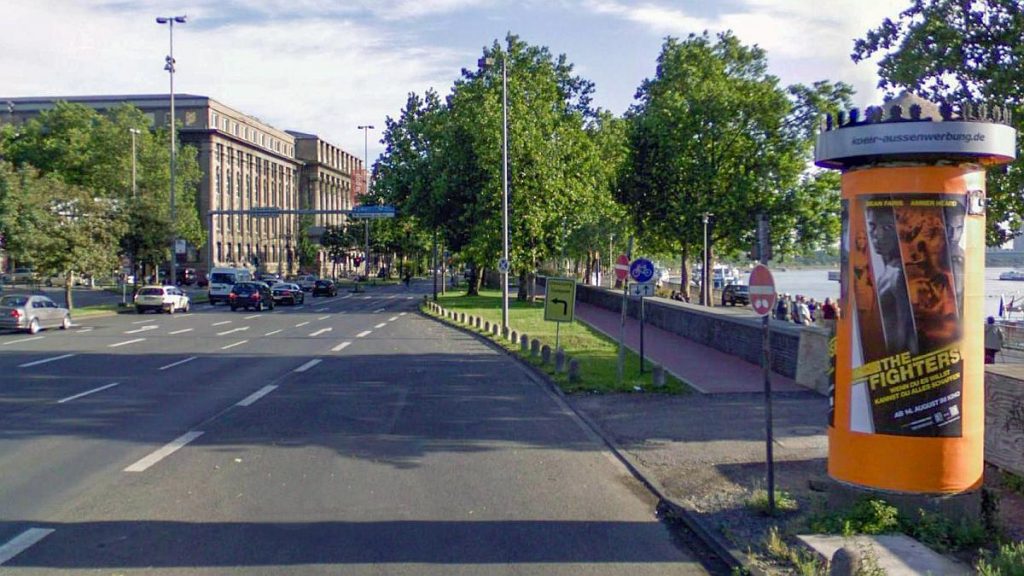 The old route of the Rheinuferbahn out of Bonn is now a roadway! This is Rabinstrasse. The tram/light rail from Köln is in a tunnel beneath. Source: Google Streets.