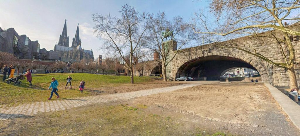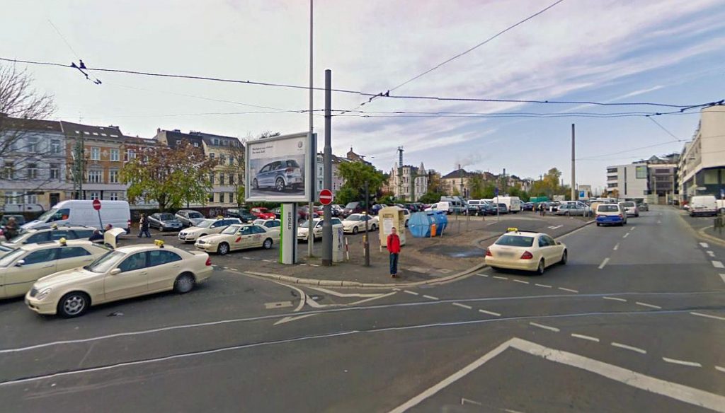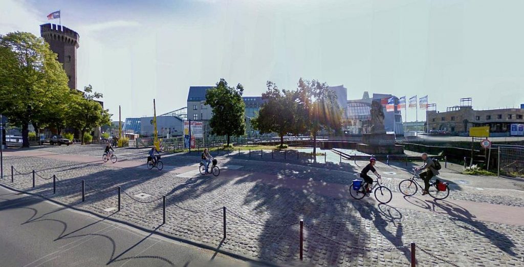 The site of the former KBE terminus south of the Hohenzollernbrücke. It was after WWII that the KBE’s terminus was moved to the more modern terminus just north of the bridge. Source: Google Streets.