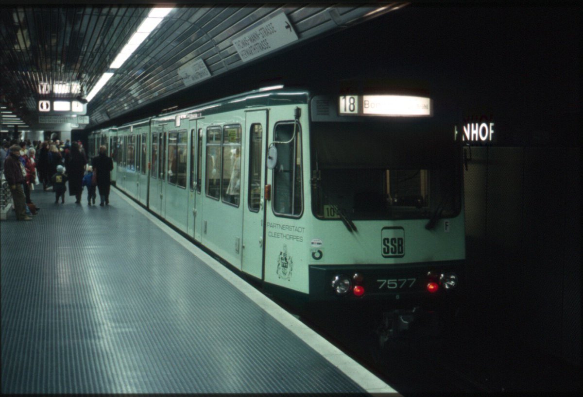 The underground platforms at Bonn Hauptbahnhof in 1991. These replaced the KBE’s Bonn Rheinuferbahnhof terminus. The tram is on Line 18 which utilises the Vorgebirgsbahn. Note the ‘twinned with Cleethorpes’ on the side of the tram! Source: Twitter.