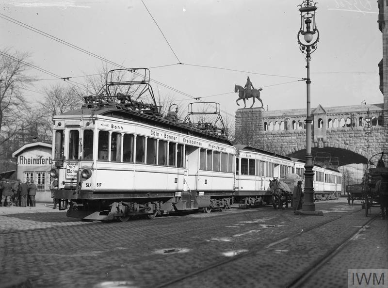 The Rheinuferbahn was originally envisaged as a metre gauge electric railway but it was soon thought a rapid transit service would be better operated with standard gauge trains because the company would then be better able to compete with the country’s main railway route (the Linke Rheinstrecke or West Rhine Railway) between the two cities. Until 1918 the company was known as the Cöln-Bonner Kreisbahnen (CBK). From 10th June 1918 it became the Köln-Bonner Eisenbahn.