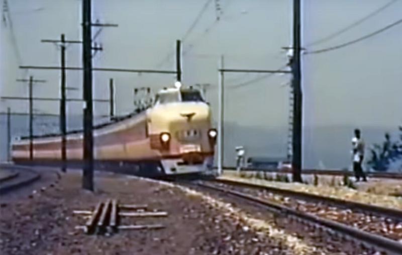 The Kodama express train on its way to break the record for high speeds on the narrow gauge. 31st July 1959. This can be seen on You Tube.