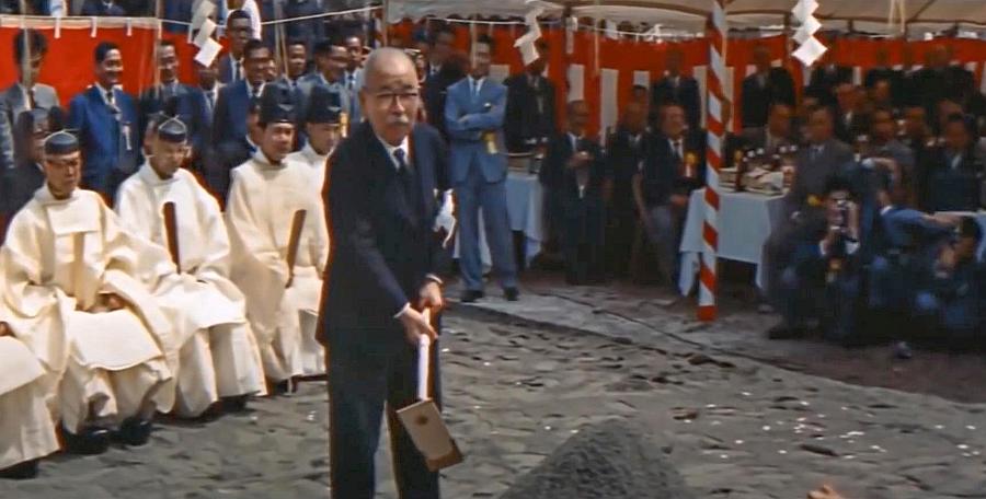 Shinji Sogō performed a major ceremony at the entrance to the New Tanna tunnel in 1959.