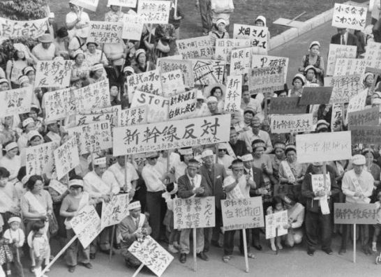 It is probably assumed by most the Shinkansen was built without any opposition. In fact there was considerable opposition to it. Around 50,000 households, a huge number in those days, were evicted to make way for the new line. There was a number of attempts to sabotage the works and attempts to cause derailments. As a result the government urgently passed new laws carrying very severe penalties for anyone trying to interfere with the new line.