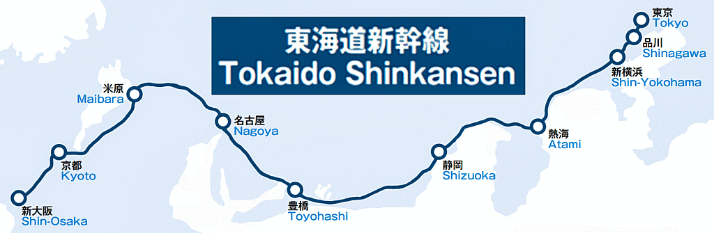 Map of the Tōkaidō Shinkansen showing the main stations.
