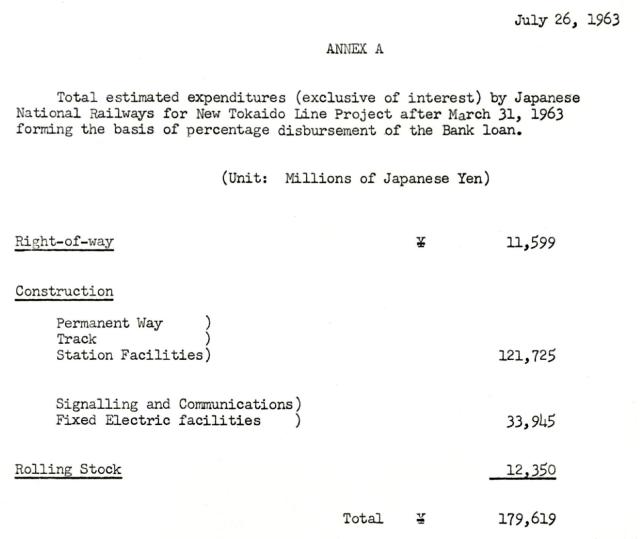 JNR’s estimates of the costs which would be needed to complete the New Tokaido Line. Source: World Bank