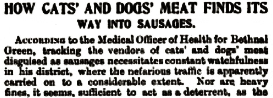 How cat and dogs’ meat finds it way into sausages…. Source: Google Books