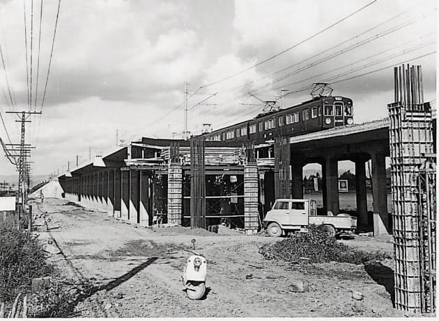 The new high speed line was to take an elevated route between these stations and the Hankyu railway desired that its line should do the same. The company’s existing line was at ground level but at risk of subsidence from the construction of the Shinkansen. It was thought the new elevated route (a mix of embankment and viaduct) would actually help some way towards stabilising the area’s problematic geology which was causing the issues. That as well as providing a safety barrier for the new high speed railway.