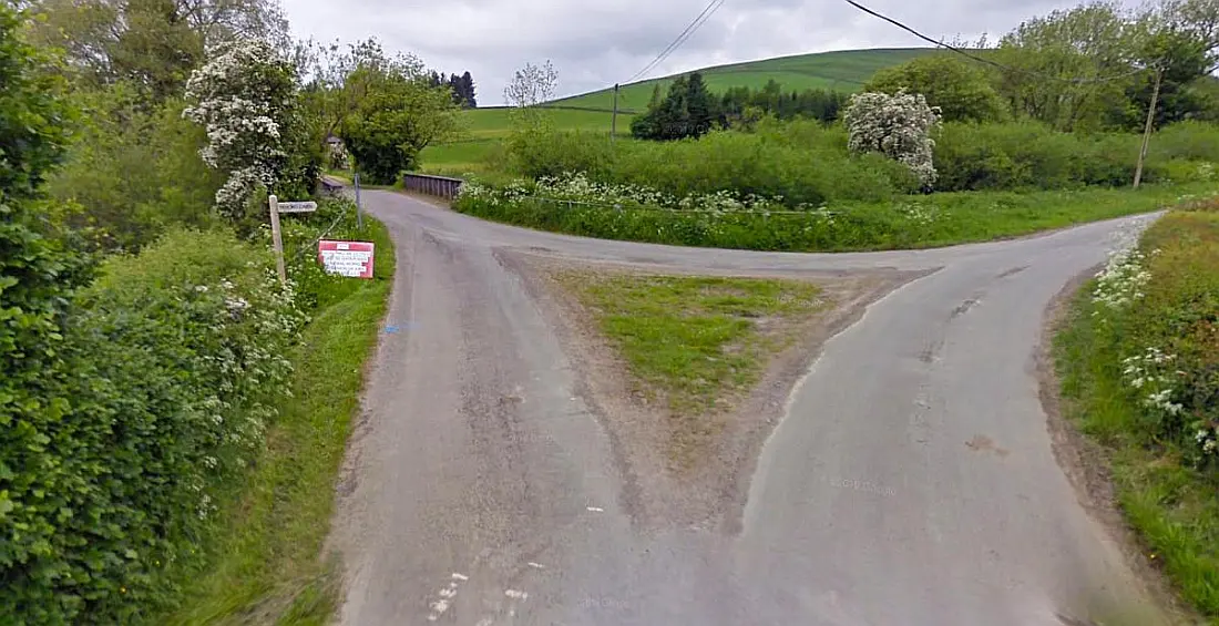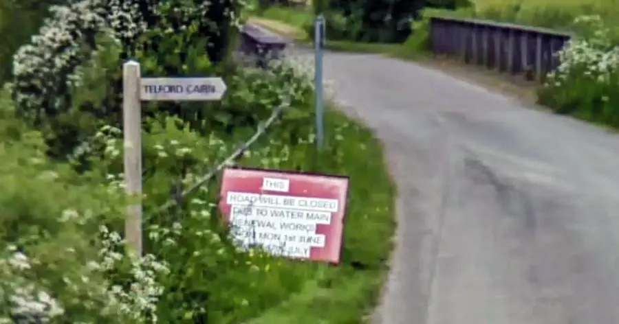 This road junction near Westerkirk has a signpost that says ‘Telford Cairn’ – the road heads northwest but is not covered by Google. Source: Google Streets.