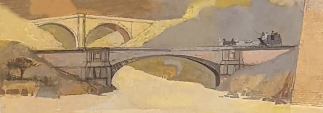The lower one (below the mystery bridge) depicted as number three on the Rosoman’s picture is Over bridge which spans the Severn near Gloucester, a very usual structure as far as Telford’s designs go.