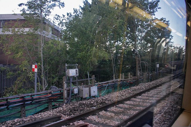 The ‘Arnos Grove station’ in question – its actually the substation by Southgate viaduct – as seen from a passing train.