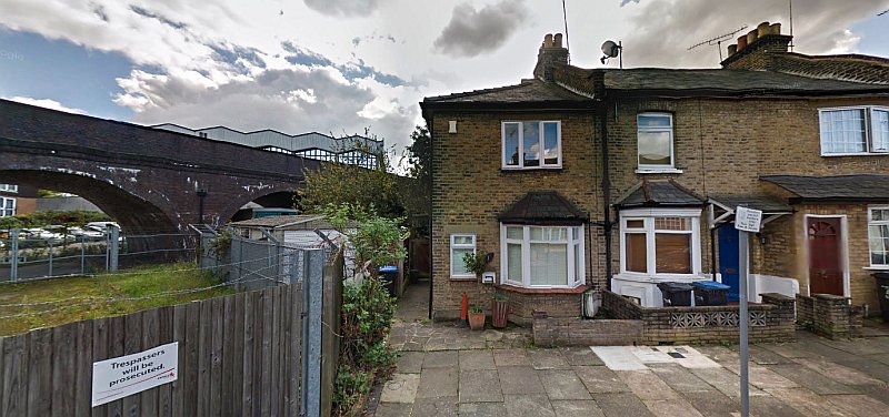 The same houses in Hillside Grove with Southgate viaduct on the left. Source: Google Streets.