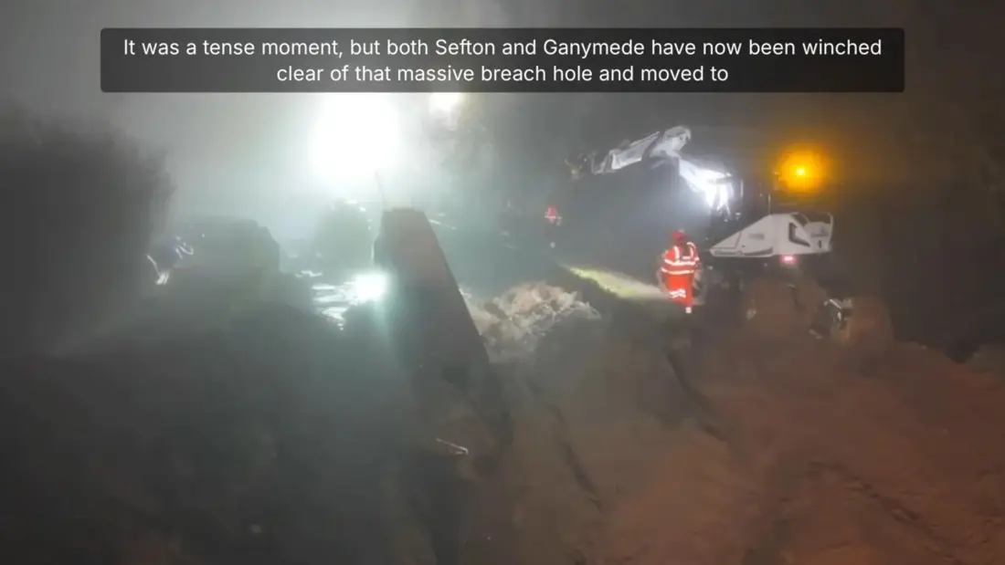 At the moment nothing of any sort of excitement is happening at the Whitchurch breach site. The two boats Ganymede and Sefton are floating and all seems quiet. The biggest noise probably comes from the traffic on the nearby Whitchurch by-pass. Unless numerous drones from Youtubers and the likes come to collect above the site at some point – and then that might be a case of the traffic being droned in silence!