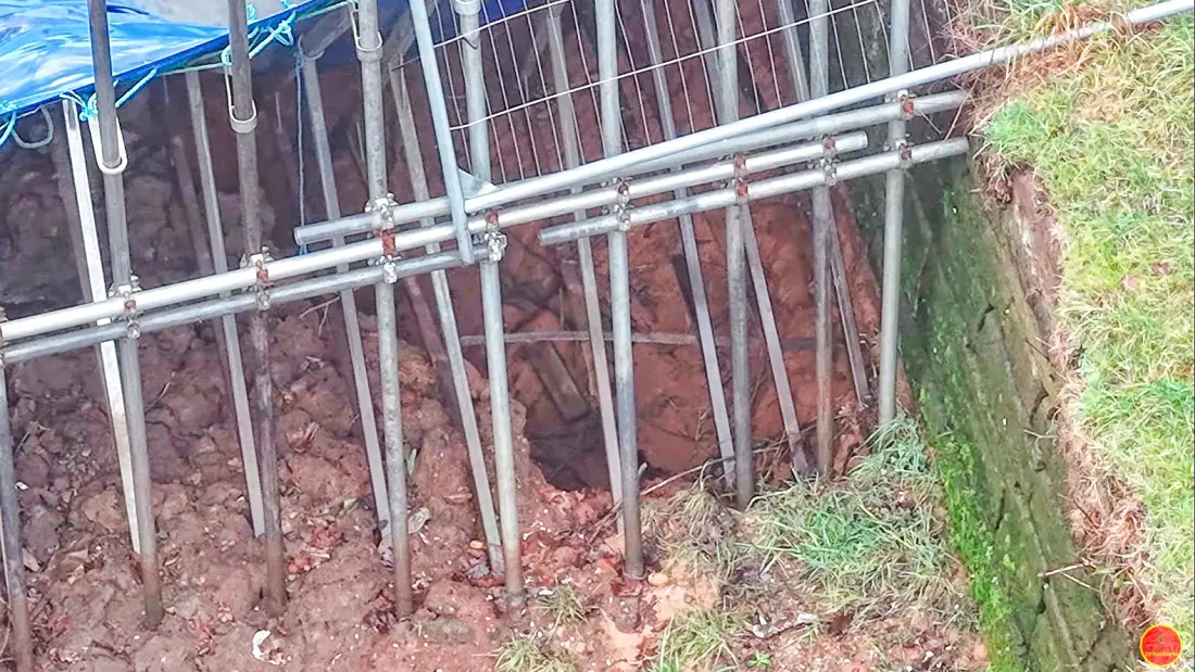 Explore with Ant discovered today what appears to be a new hole in the Bridgewater canal’s Bolin embankment. This new partial collapse of the canal bed is directly underneath one of the cofferdams where they were supposed to be constructing new, proper bunds. For months its been known that water has been making its way beneath the towpath and it leaches out into the half empty canal between the two cofferdams. This new ‘sinkhole’ appears likely to be a result of this water being pushed beneath the canal towpath. Provided it doesn’t get too big and cause some further calamity, it’ll be an extra problem to deal with because the extent to which the Bolin embankment can be classed a failure will now have to be extended past the Bolin underbridge to where the cofferdams and winding hole is.