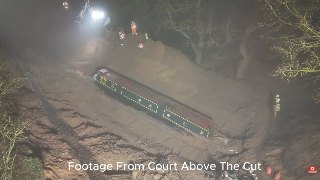 Salvage Operation: Saving the Stranded Boats at Whitchurch Canal Breach – starting at 01.10 and ending at 01.16 on Beagle Bum’s video, the footage is from Court on Cut’s video.